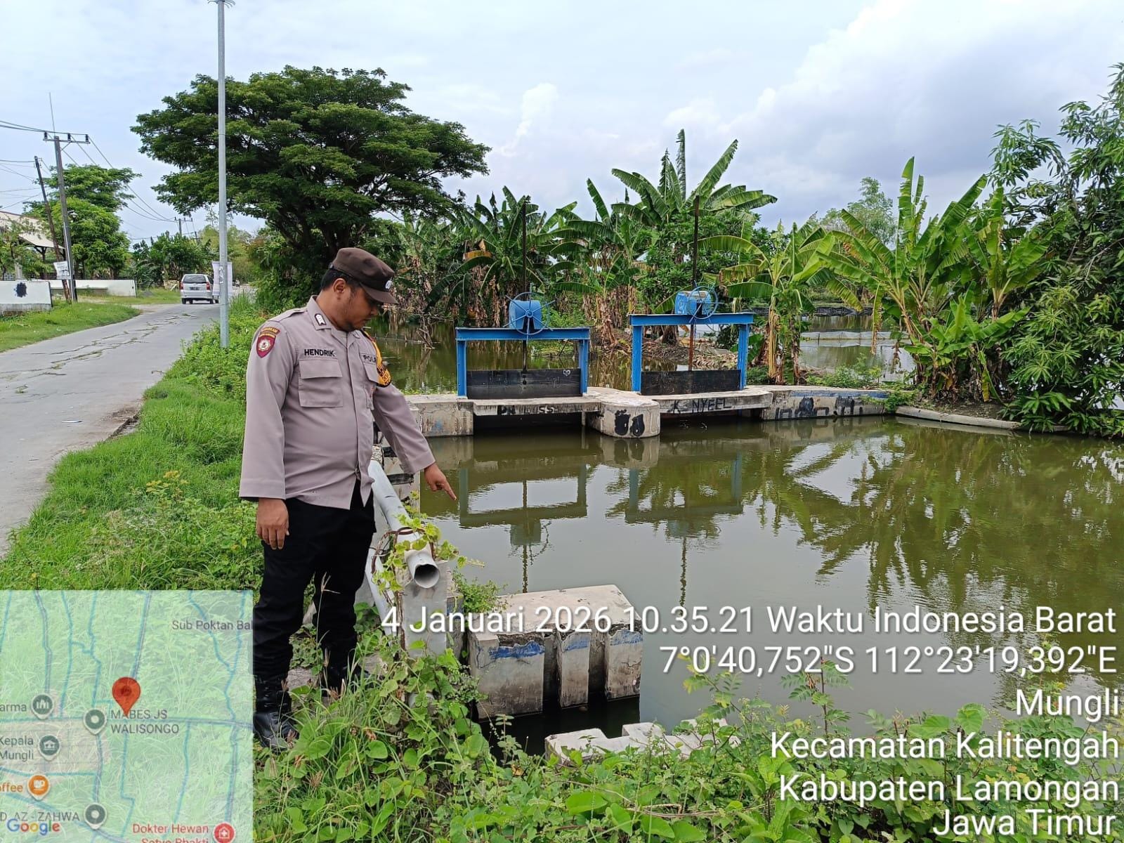 Lamongan, BERITAMADAS 4 Januari 2026 – Di tengah musim hujan yang rawan banjir dan angin kencang, Polsek Kalitengah Polres Lamongan tak tinggal diam. Bertiga personel handal. Aiptu Fathoni, Bripka Ferry, dan Bripka Hendrik langsung terjun patroli presisi ke Desa Mungli, Kecamatan Kalitengah, sejak pukul 10.35 WIB hari ini. Kegiatan ini bagian dari Patroli Kota Presisi (PKP) untuk monitoring dan antisipasi bencana alam, pohon tumbang, serta banjir.